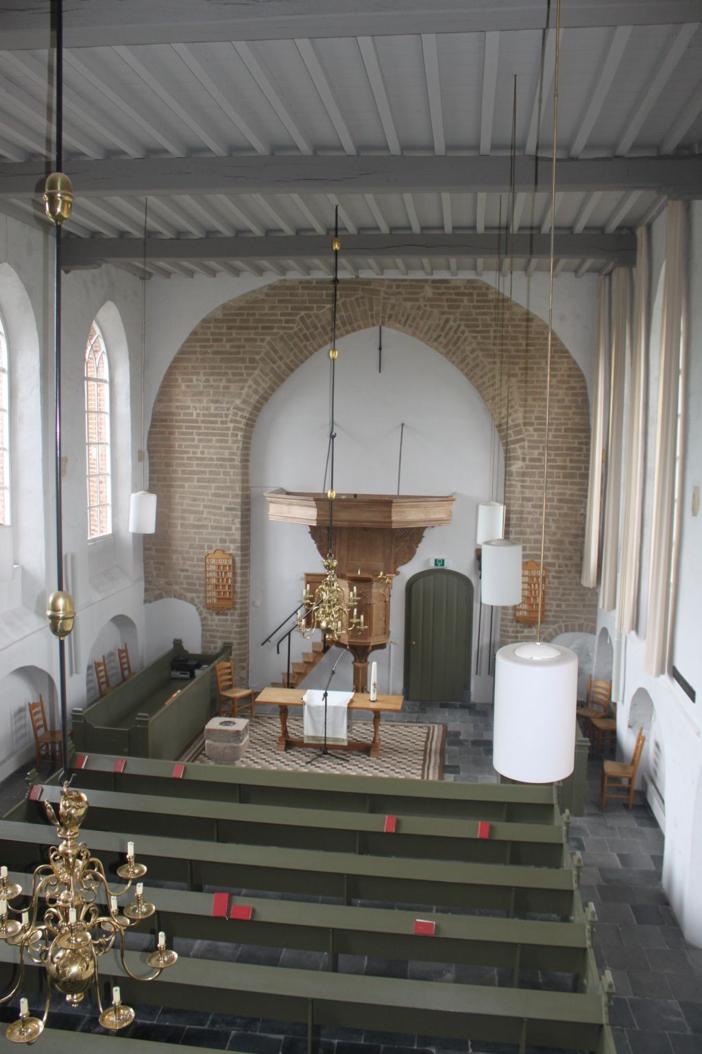 In de kerk is een aantal mooie elementen te zien zoals het doopvont, gemaakt van blokken tufsteen uit de oude toren en een fraaie preekstoel uit circa 1675 bevestigd onder de triomfboog. Ook te zien is een stenen sarcofaag van ongeveer 800 jaar oud, afkomstig van het kerkhof te Erichem, en het orgel uit circa 1800. In 1909 is de zondagsschool opgericht, die tot op heden bestaat. Elke andere zondag vinden hier diensten plaats.